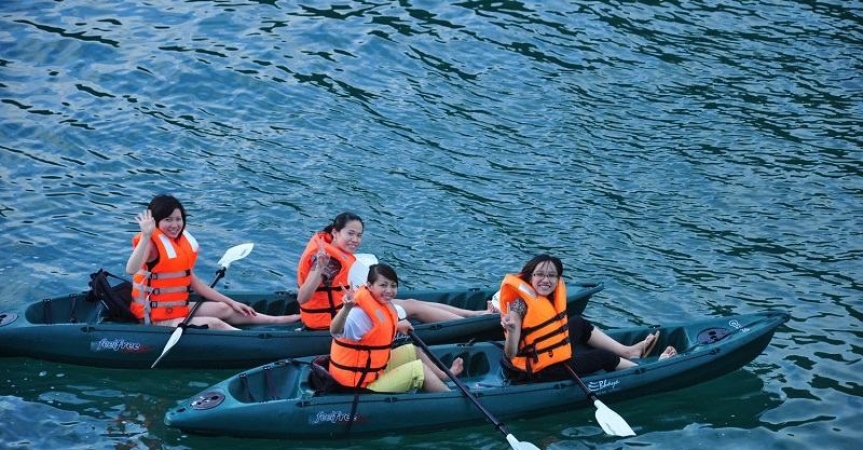 thuyền Kayak xung quanh khu vực Làng chài, ngắm nhìn vẻ đẹp của sóng nước Hạ Long.