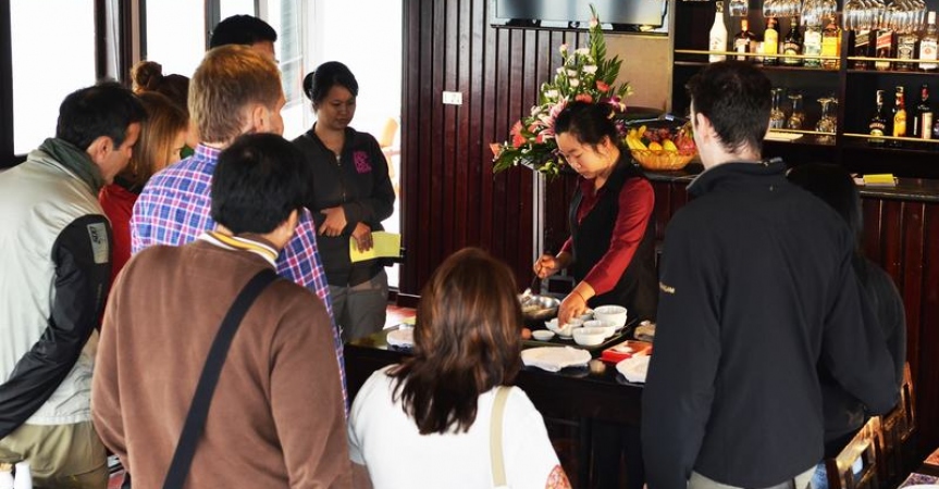 18:00: Tham gia lớp học nấu ăn trên tàu với đầu bếp chuyên nghiệp, thân thiện của du thuyền : du khách sẽ được học và thực hành cách làm các món ăn truyền thống của Việt Nam.
