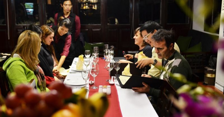 19:30: Quý khách thưởng thức bữa tối tại nhà hàng với nhiều món ngon hấp dẫn và ngắm cảnh vịnh về đêm.