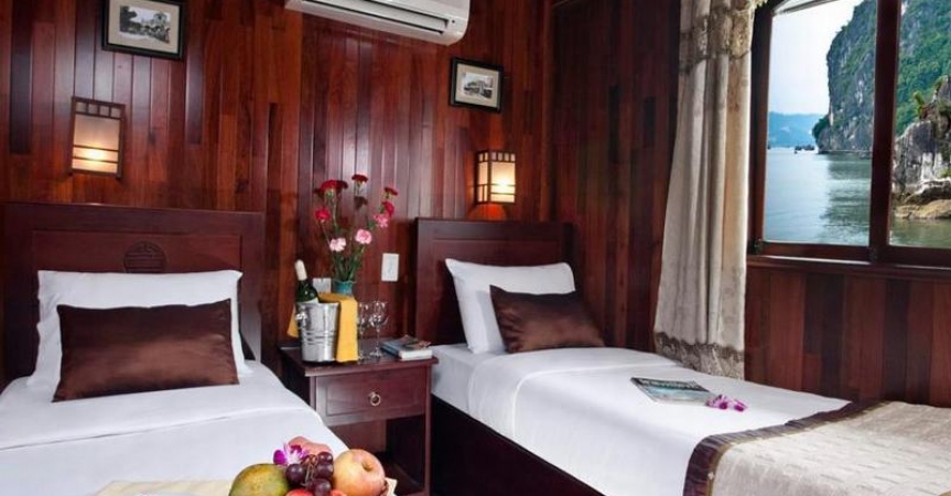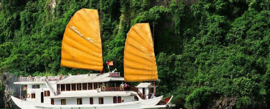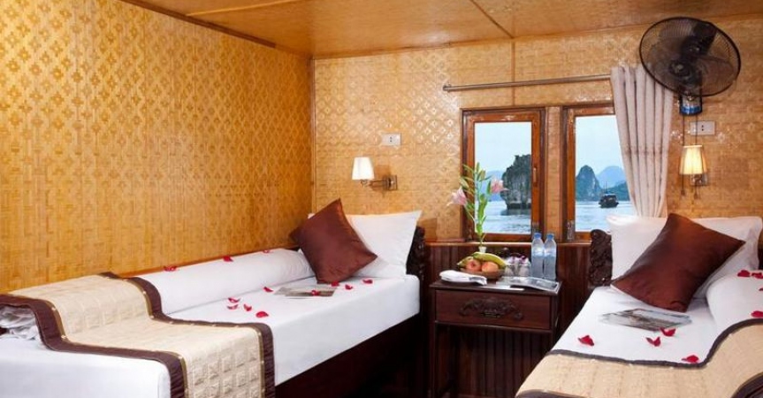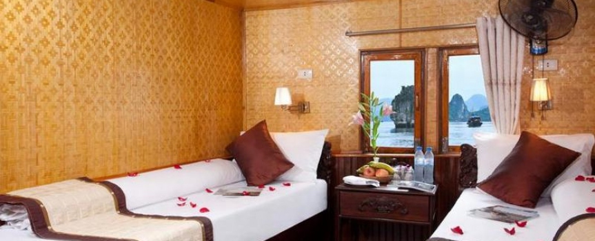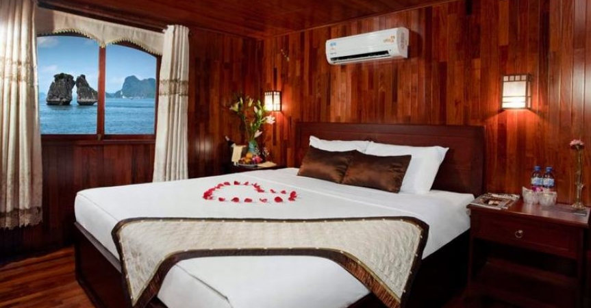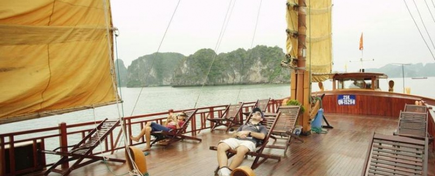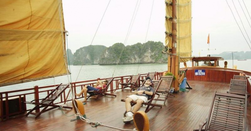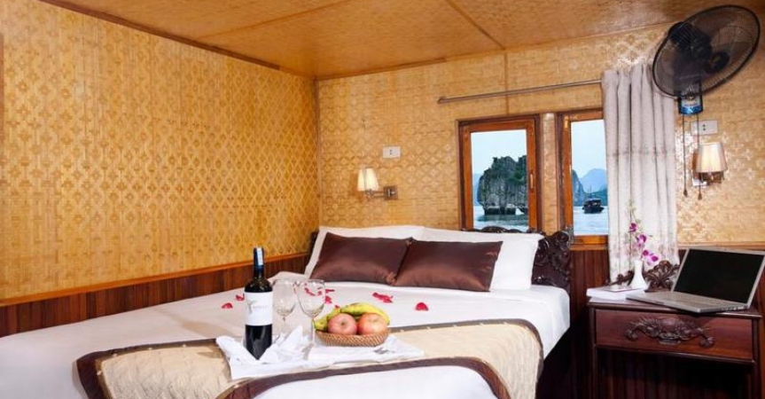12.30 Quý khách thưởng thức bữa trưa trên tàu và cảm nhận vẻ đẹp duyên dáng của Vịnh Bái Tử Long trong khi tàu di chuyển về hang Thầy.
