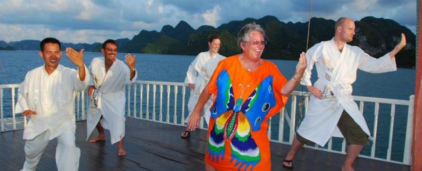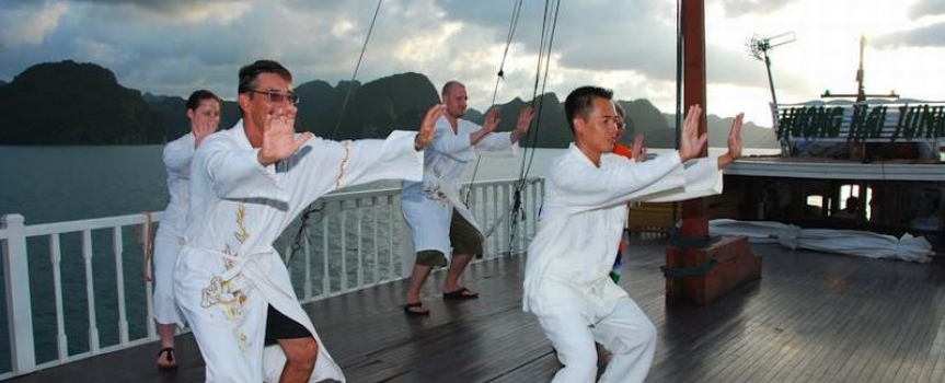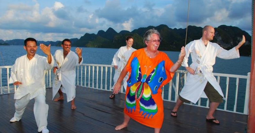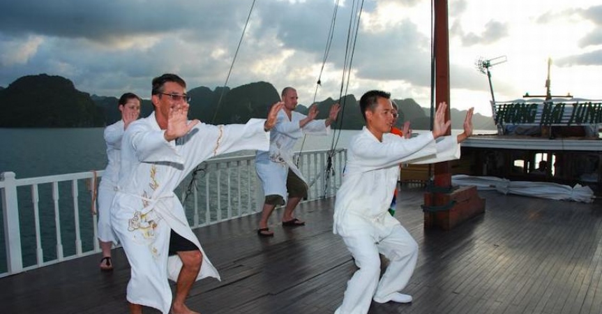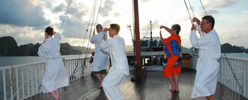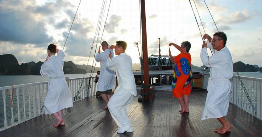6.30 Quý khách thư giãn và tham gia lớp tập thể dục dưỡng sinh bắt đầu trong sớm bình mình trên Vịnh Bái Tử Long huyền bí.