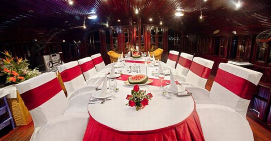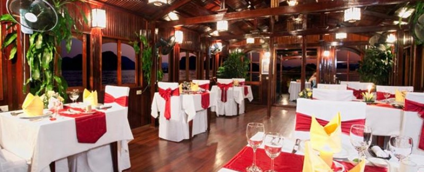 Quý khách chiêm ngưỡng vẻ đẹp quyến rũ của Vịnh trong khi dùng bữa trưa tại nhà hàng (tầng 1).