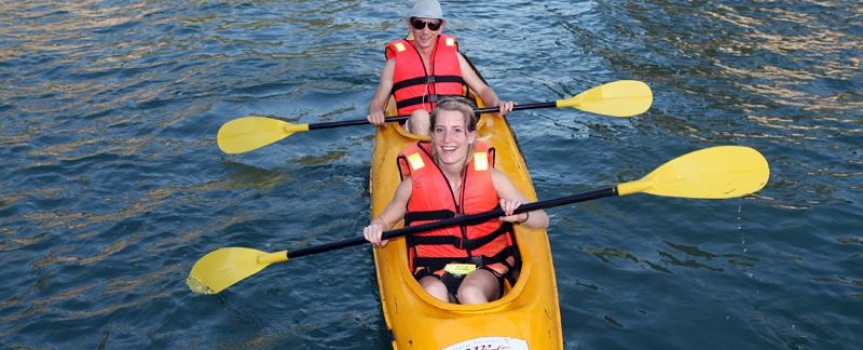 Với những khách đặt dịch vụ chèo thuyền kayak: Sau khi thăm quan hang Sửng Sốt, quý khách có thể chèo kayak để khám phá vịnh Hạ Long và trải nghiệm 1 cảm giác mới lạ trên kayak.