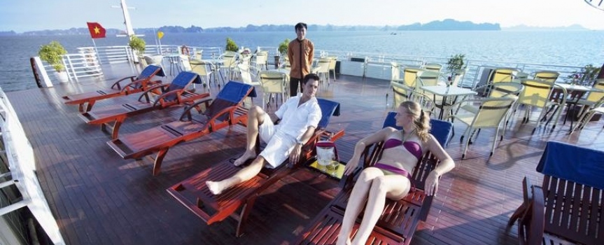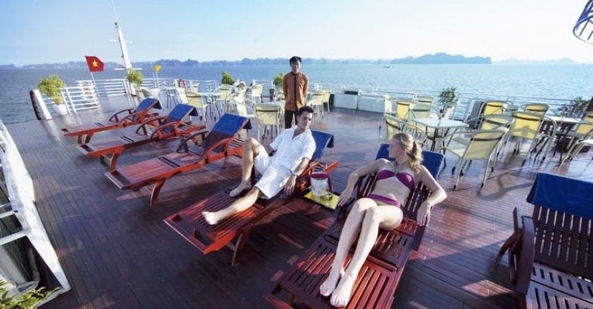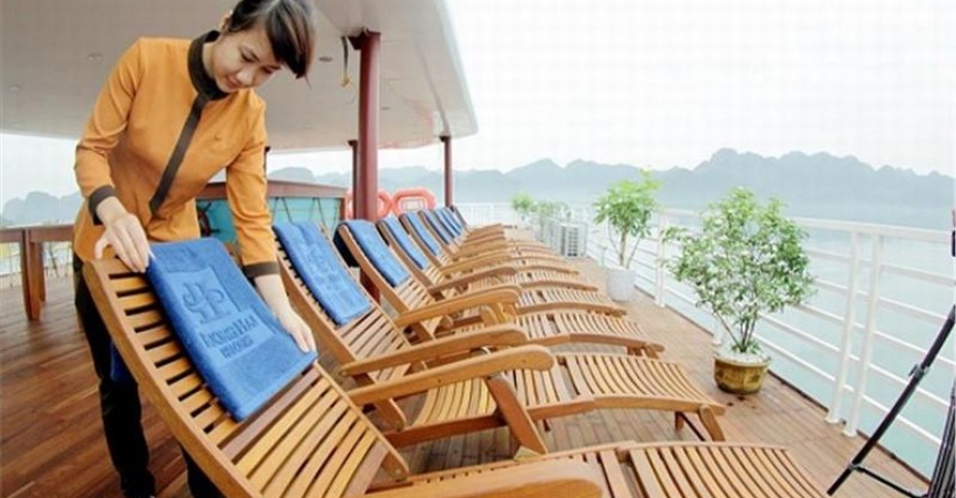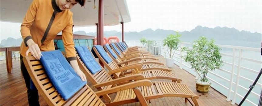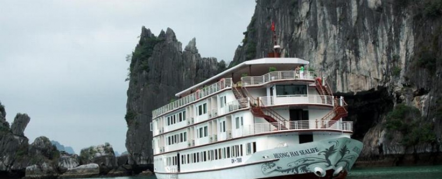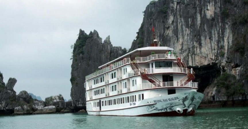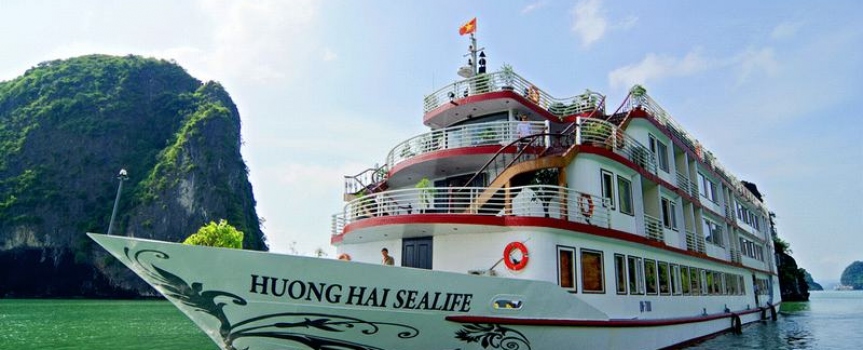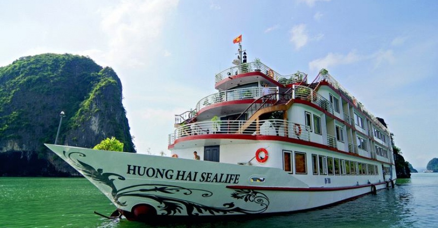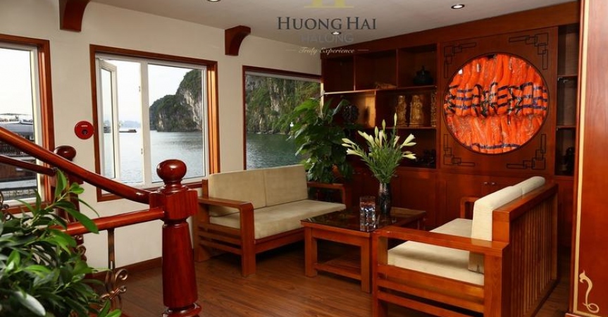 12.30 pm: Nhận phòng trên du thuyền Hương Hải, thưởng thức đồ uống chào mừng.