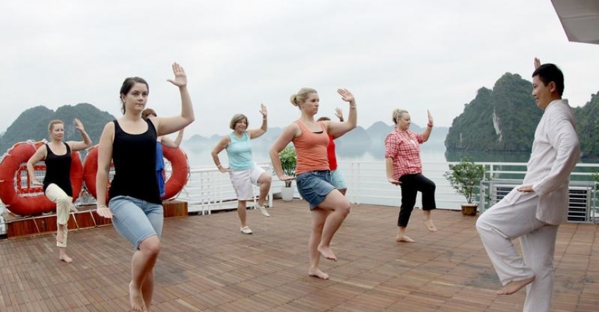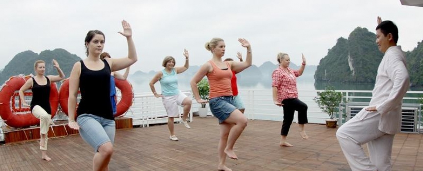 6h30: Quý khách tham gia lớp tập Thái Cực Quyền trên boong tàu lúc bình minh.