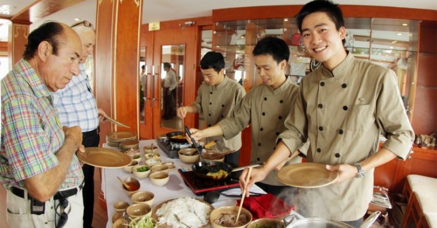 9.30 am: Quý khách dùng bữa trên du thuyền.