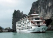 8.30 am: Quý khách chuyển sang tàu ngày và bắt đầu khám phá vịnh Hạ Long. Thăm quan khu vực hang Dơi, làng chài Vạn Gia, hoặc khu vực Ba Trái Đào hay hồ Ba Hầm (địa điểm chính xác phụ thuộc vào thuỷ triều và thời tiết, đặc biệt là vào mùa gió nồm Nam mùa hè). Tại đây quý khách có thể bơi lội và chèo kayak.