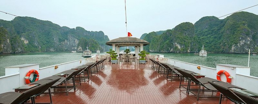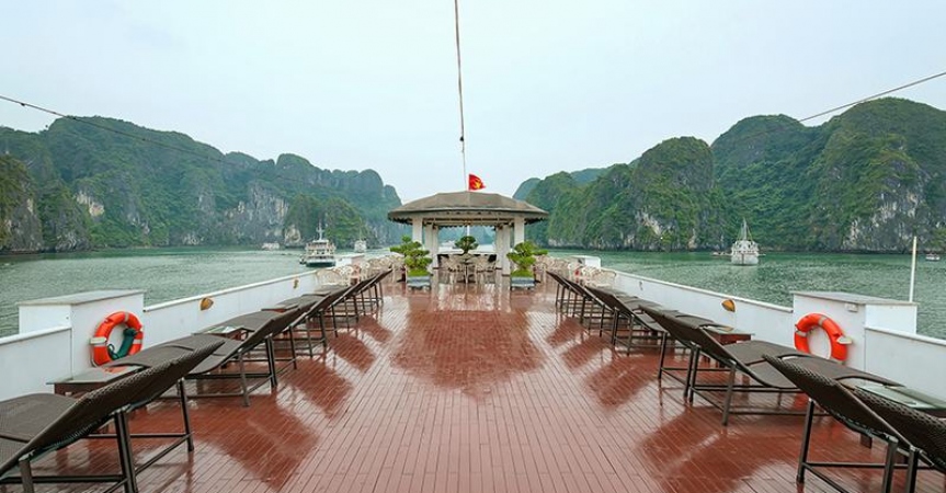 Du thuyền được làm hoàn toàn bằng sắt, thiết kế theo phong cách hiện đại của thế kỉ 20, khác nhiều so với những chiếc du thuyền bằng gỗ mang đậm phong cách phương  Đông truyền thống. Đặc biệt khu sân thượng rộng rãi với những băng ghế dài, đảm bảo mang đến không gian trải nghiệm và thư giãn tuyệt vời cho từng du khách.