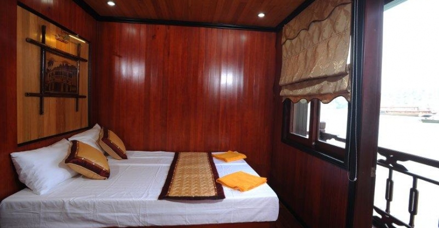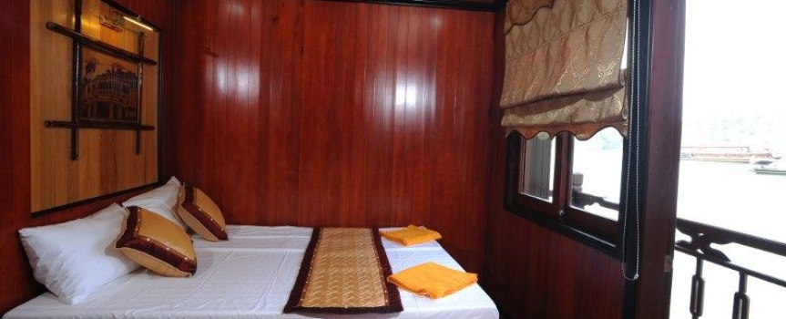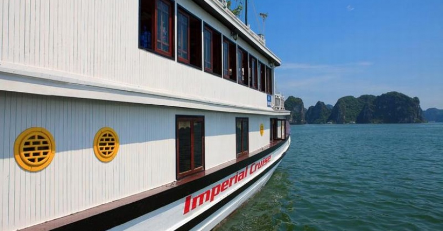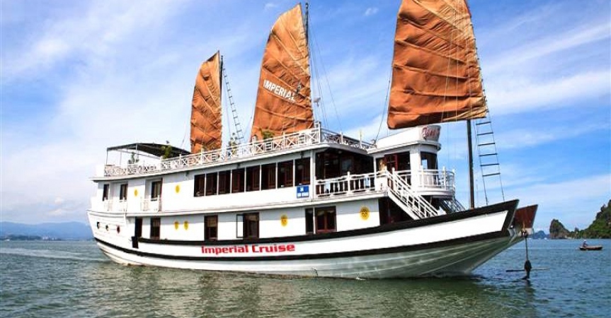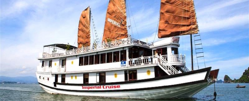 Xe sẽ đón tại khách sạn của khách. Rời Hà Nội lúc 8:15 sáng để đi Hạ Long bằng xe bus. Hạ Long - một thắng cảnh được UNESCO công nhận là di sản thiên nhiên của Thế giới. Lên tàu Imperial Cruise. (Tàu tiêu chuẩn 3*) Khách nhận phòng trên thuyền và bắt đầu chuyến tham quan quanh vịnh để ngắm những đảo núi đá vôi rất lạ mắt với những hình thù và cấu tạo khác nhau: Sư Tử, Ấm Trà, Con Cóc, Đầu người (Human Head) , Gà chọi, Chó đá,..., và dừng lại đi bộ xuyên qua hang Sửng Sốt. Tắm biển và chèo thuyền kayak( nếu thời tiết cho phép) . Ăn tối và nghỉ đêm trên tàu Luxury Imperial