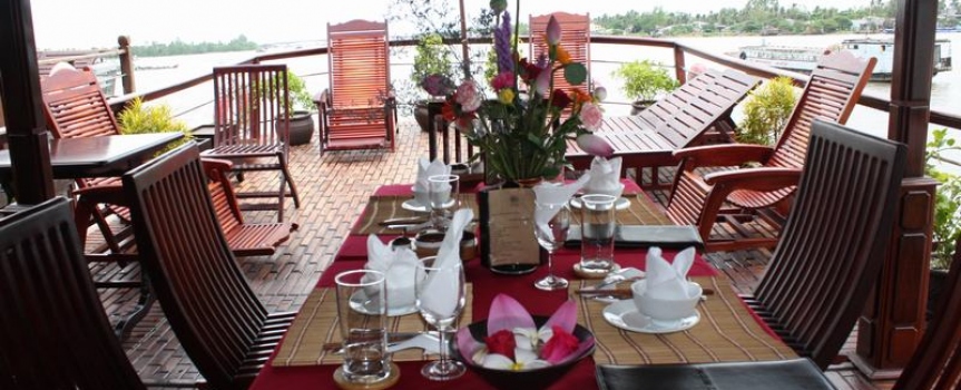 Du thuyền Mekong Douce là một du thuyền trên sông hiện đại, được làm hoàn toàn bằng gỗ mang lại không gian ấm cúng và thân thiện cho du khách trên hành trình trải nghiệm đồng bằng sông Cửu Long.