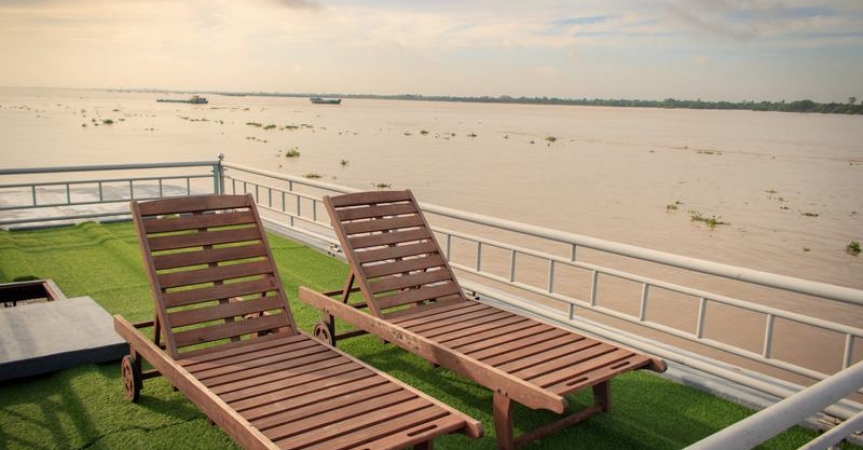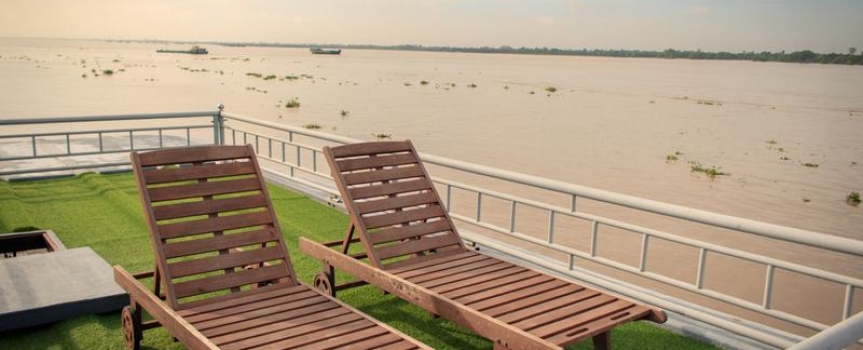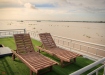 Khu vực Sundeck trên du thuyền Mekong Douce mang lại một trải nghiệm hoàn hảo trong không gian tươi mới để chiêm ngưỡng cảnh quan tuyệt đẹp dọc bờ sông Mekong, cũng là nơi du khách thư giãn và tận hưởng dịch vụ massge tuyệt vời.