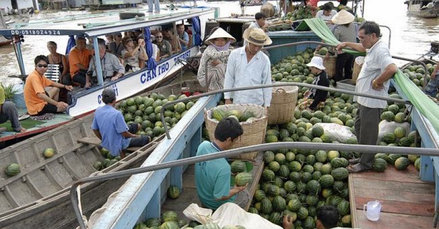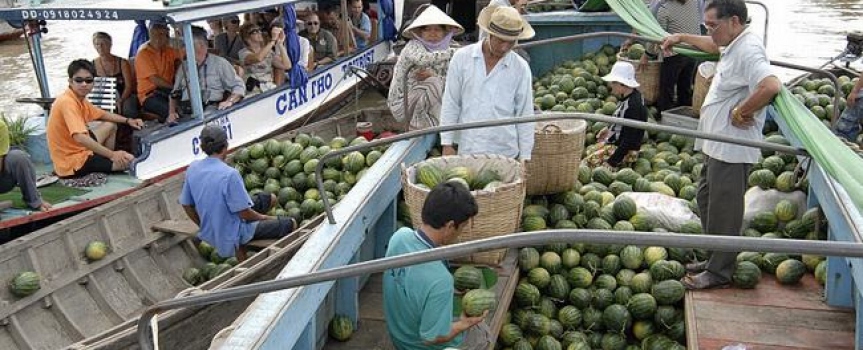 After morning tea and an early start through the glorious morning atmosphere on the river we will visit the famos floating market of Cai Rang. Marvel at the sheer abundance of exotic fruits and vegetables. We will pull up to the boats for talking and bargaining with the merchants.