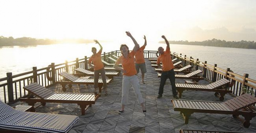 Wake up well rested to the sound of the River and get ready for another exciting day of sightseeing. At 6.30h the boat sets off for a sunrise cruise. Watch the locals go about their daily work drying exotic fruits and building ships on the wooden yards while enjoying an early breakfast.