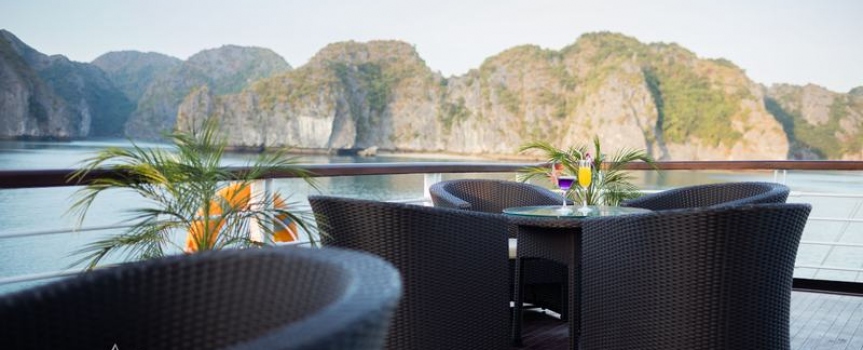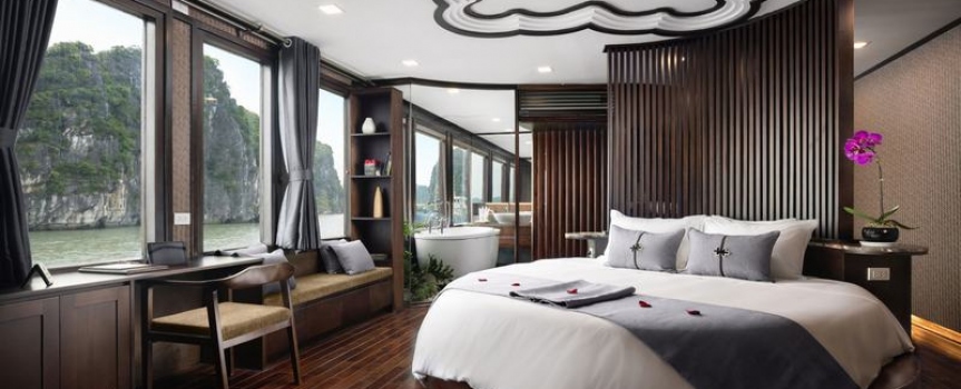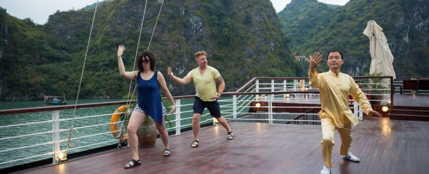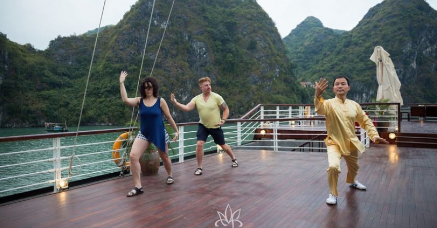 06h00: Buổi sáng thức dậy sớm với lớp học Taichi trên boong tàu. Thưởng thức bữa sáng, sau đó tiếp tục hành trình khám phá vịnh Bái Tử Long. Một chiếc thuyền sẽ đưa quý khách tới tham quan và trải nghiệm vẻ đẹp hoang sơ tuyệt vời của vùng vịnh này với những ngôi nhà và cửa hàng nhỏ tại làng chài Vung Viêng.