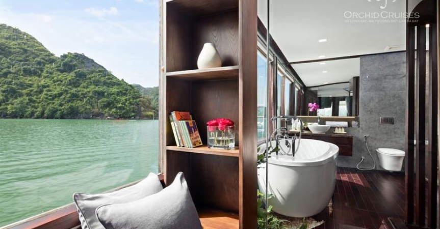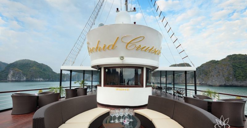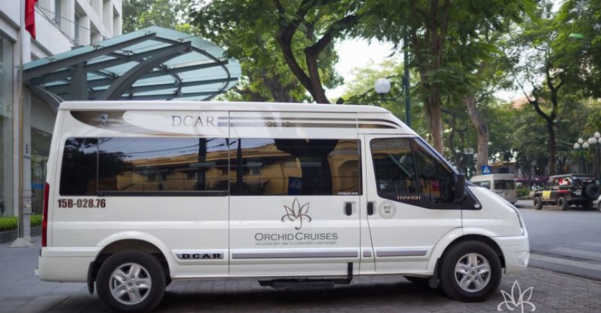 09h00: Xe đón quý khách tại khu vực Phố cổ Hà Nội, đến cảng Đình Vũ, Hải Phòng vào lúc 11h30. Quý khách thưởng thức tiệc trà trong không gian chào đón ấm cúng tại phòng chờ của Orchid Cruise.