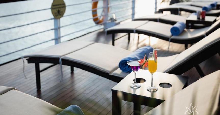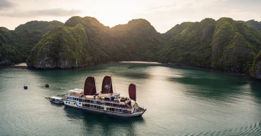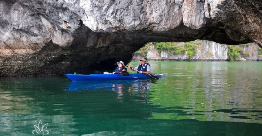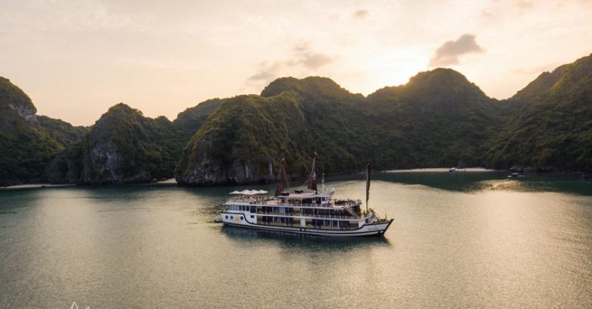 06h00: Thức dậy sớm để chiêm ngưỡng cảnh bình minh tuyệt đẹp trên vịnh và tham gia tập luyện với lớp học Taichi trên boong tàu. Quý khách dùng bữa sáng trên tàu, sau đó tiếp tục cuộc hành trình khám phá, sử dụng ca-nô để xuống vịnh tại khu vực Hang Tối – Hang Sáng.