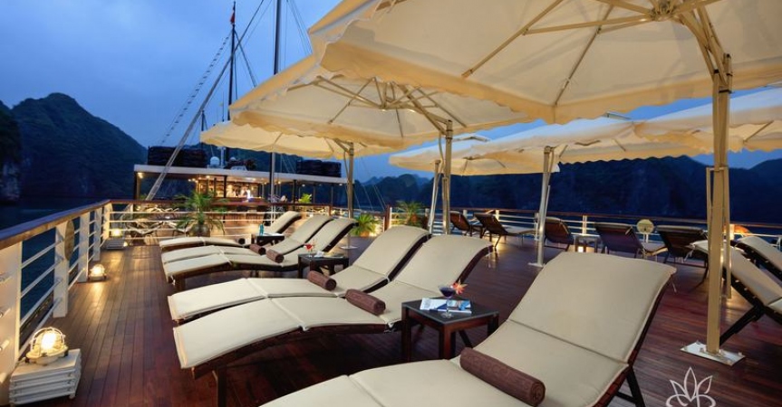 21h30: Thưởng thức phong cảnh tuyệt đẹp của vịnh vào ban đêm trên boong tàu. Thư giãn với các loại đồ uống được phục vụ ở quầy bar. Tham gia câu mực đêm, xem phim trong nhà hàng. Nghỉ đêm trên tàu.