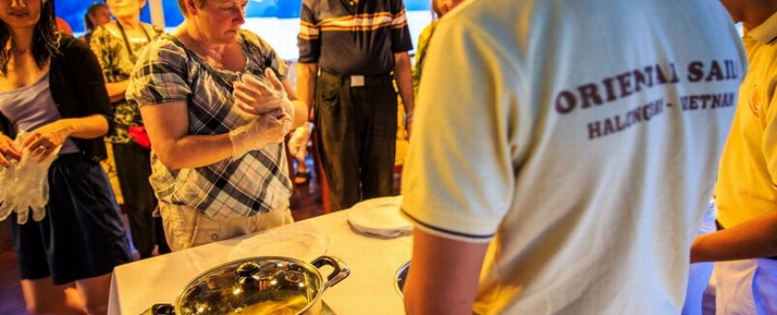 Đến Hạ Long lúc 11h30. Tại cảng tàu Hạ Long, nhân viên tàu Oriental Sails sẽ chào đón Quý khách lên tàu và làm thủ tục nhận phòng.