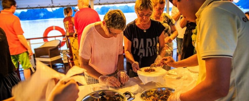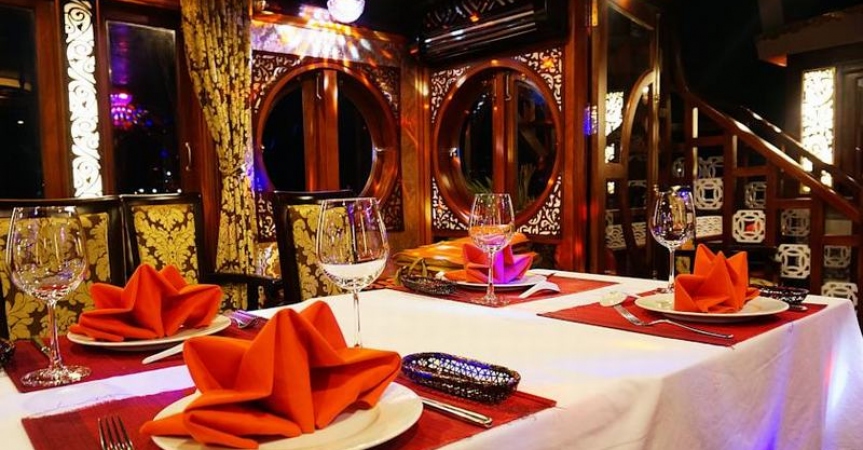 7h30 : Quý khách ăn sáng và thưởng thức những bản nhạc tự nhiên sống động từ tiếng chim hót hay những tiếng sóng đập vào mạn tàu chỉ có thể tìm thẩy ở Hạ Long.