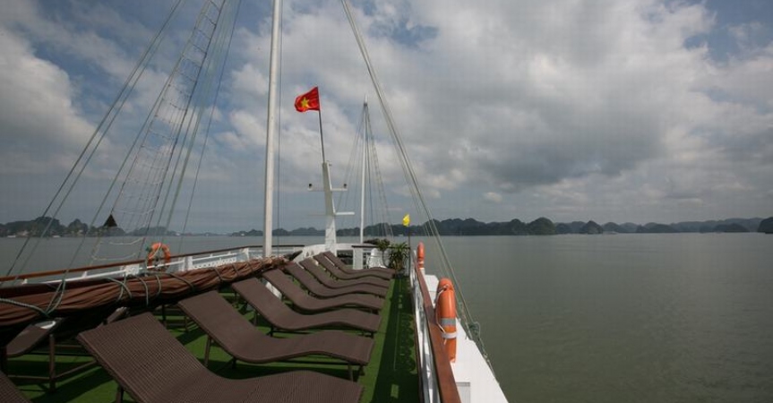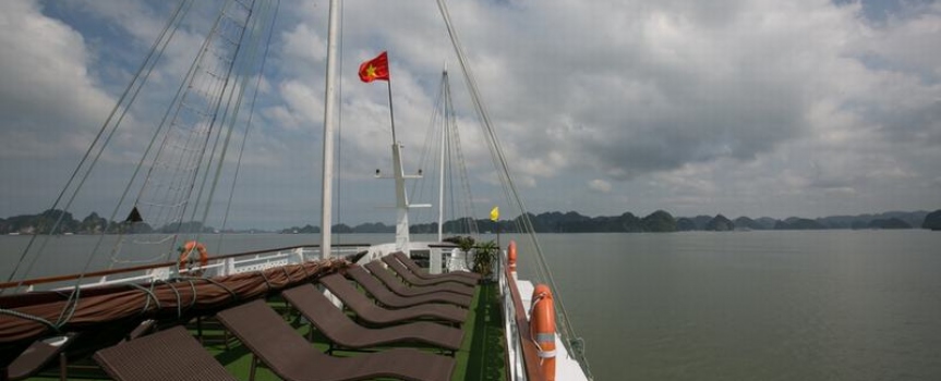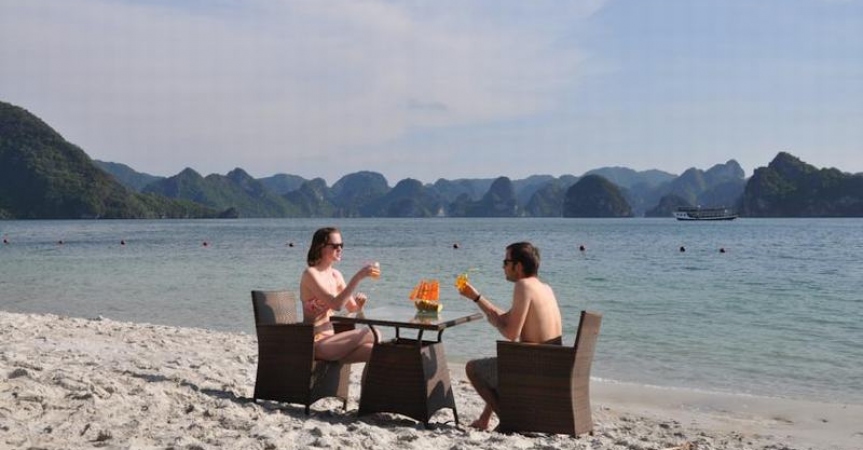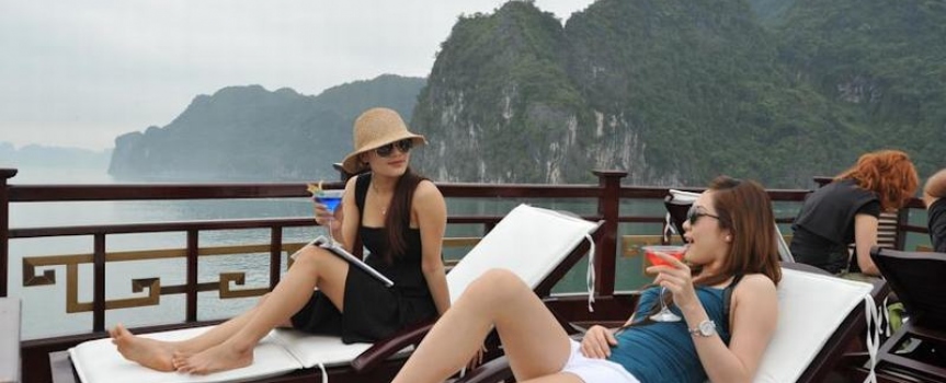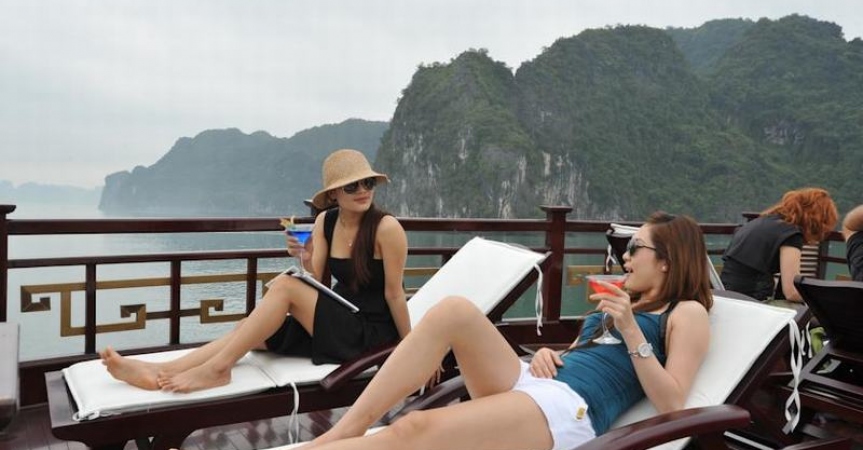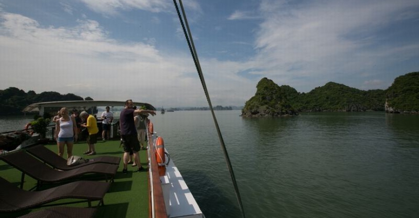 Quý khách có thể dạy sớm để thưởng thức bình minh trên vịnh, tập Tai-chi dưỡng sinh, đó hẳn là quãng thời gian đáng quý để chiêm nghiệm và cảm nhận cảnh đẹp huyền bí, yên bình của Vịnh Hạ Long.