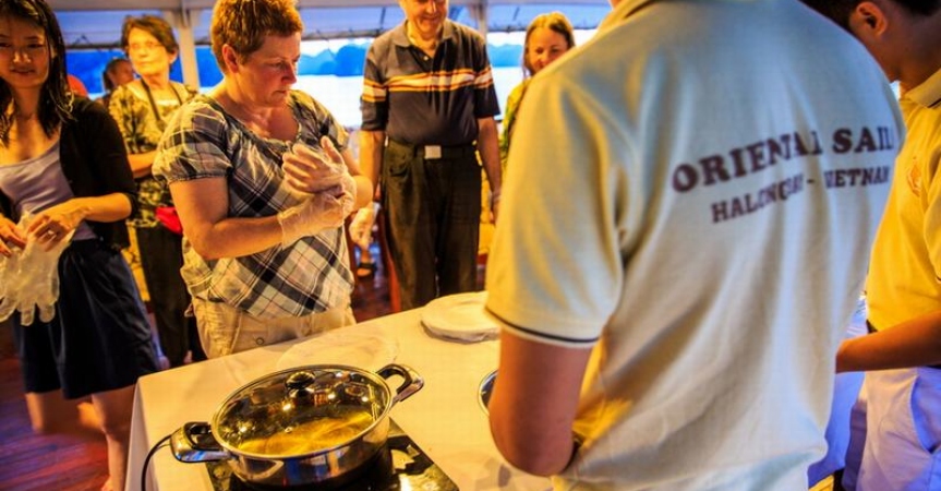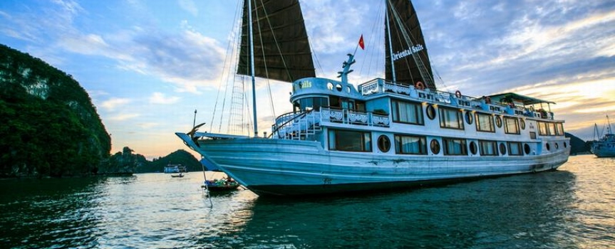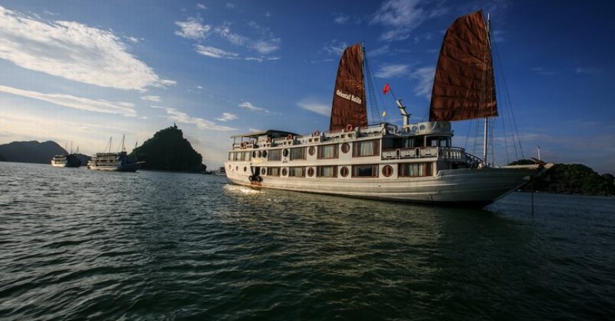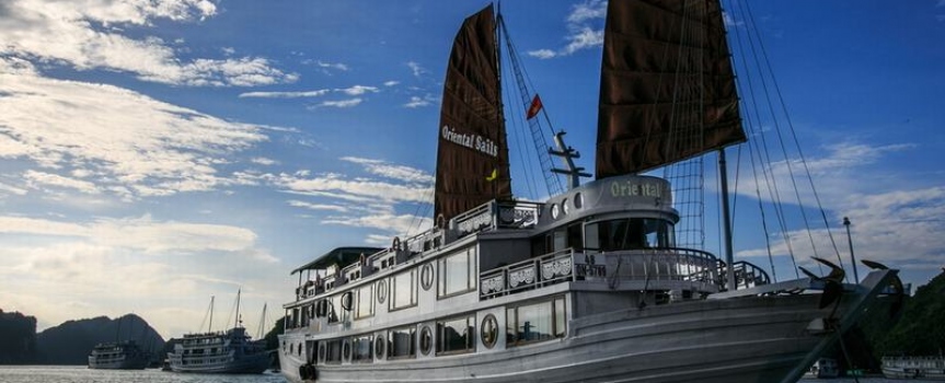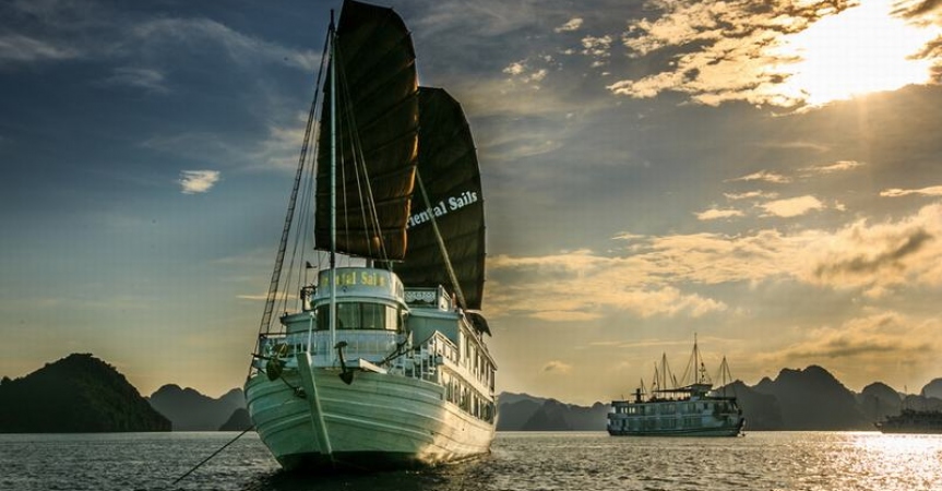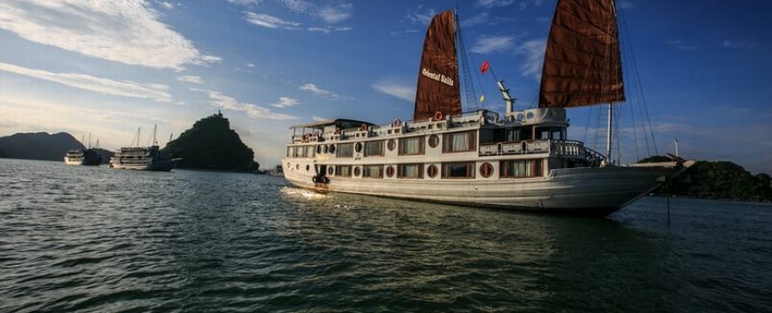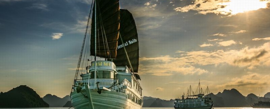 17h: Quý khách trở lại tàu Oriental Sails, ăn tối và nghỉ đêm hai trên tàu.