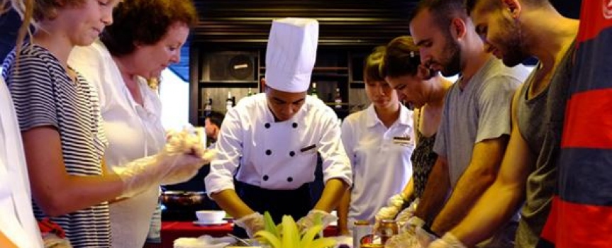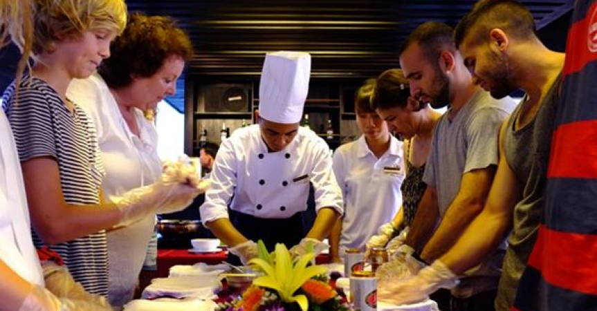 18:00 : Khách tham gia lớp học nấu ăn và thưởng thức chương trình “Giờ hạnh phúc” trên tầng 3.