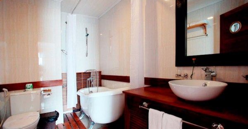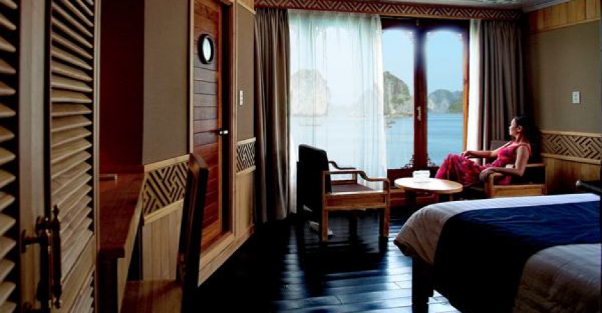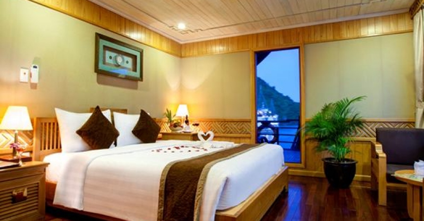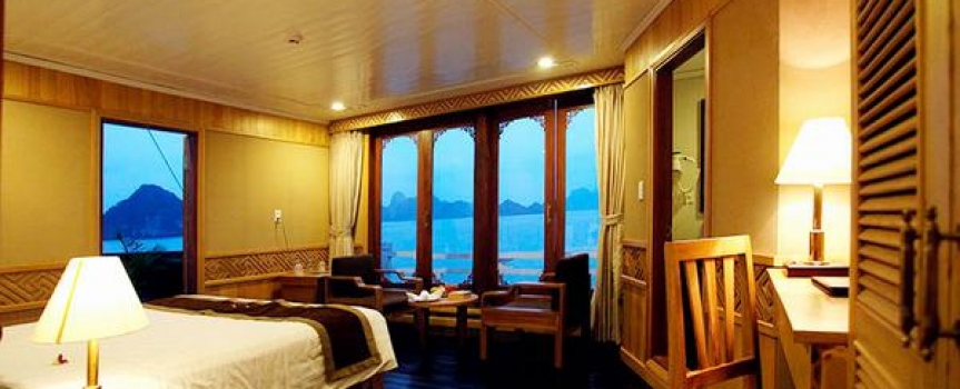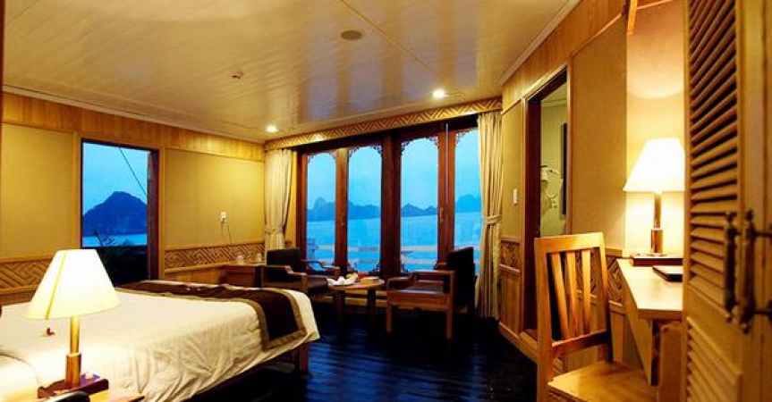 07:45 : Khách tham quan hang Luồn bằng đò chèo tay của Ban quản lý Vịnh, thưởng thức hệ sinh thái đa dạng của Vịnh Hạ Long, tender đưa khách qua các Hòn Đầu người, Hòn Rùa, Hang Bướm. Khách có thể lựa chọn tham quan Hang Luồn bằng kayak. Khách đặt trước với quản lý tàu. Giá cho thuê kayak là 200.000 VNĐ/người. ( Trừ chương trình trọn gói)