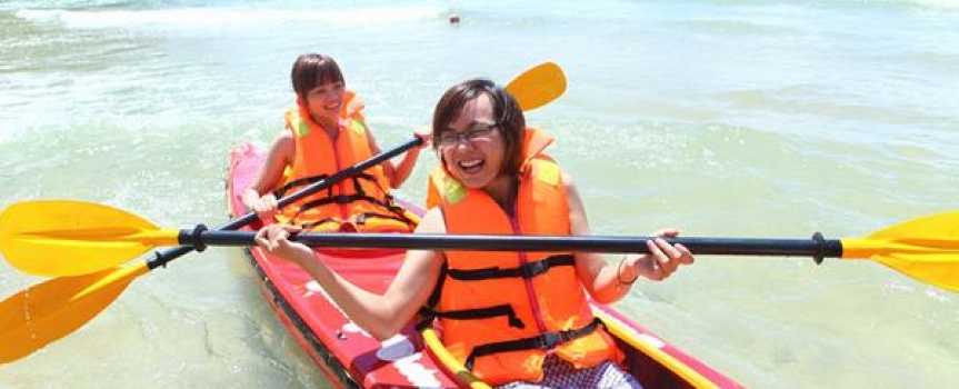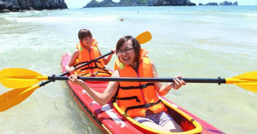 10:30 : Khách chèo kayak khám phá hệ động-thực vật Vườn quốc gia Cát Bà khu vực Hang Tối – Sáng ( hang Dơi). ( Miễn phí kayak ngày 2) 12:30 : Ăn trưa
