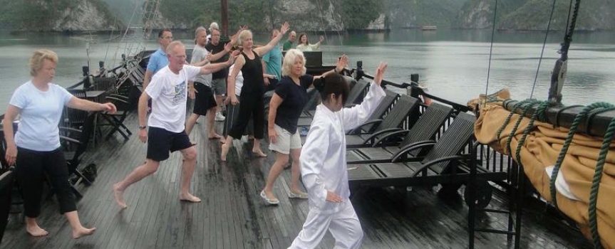 06.00 Đây là thời gian tốt nhất để bạn chiêm ngưỡng vịnh Hạ Long vào bình minh nếu bạn bỏ lỡ vào ngày hôm trước. Lớp tập Thái Cực Quyền vẫn sẽ được tiếp tục.