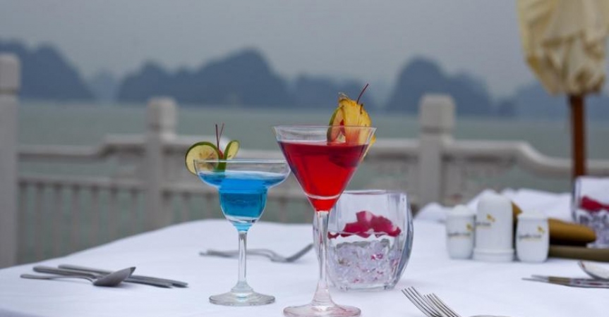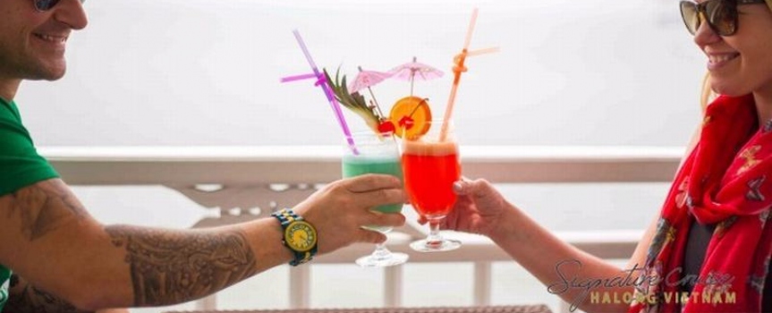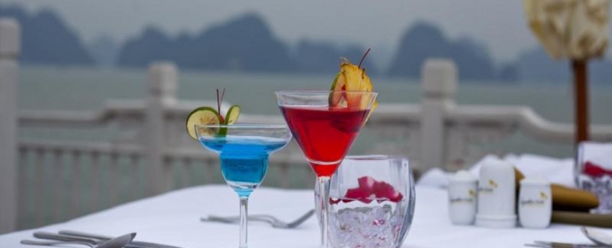 12.00 Xe tới bến tàu Vinashin, Quý khách làm thủ tục lên tàu, được chào đón bởi những nhân viên và thủy thủ tàu nồng hậu và chuyên nghiệp trong cách phục vụ. Quý khách thưởng thức ly cocktail, nhận phòng.