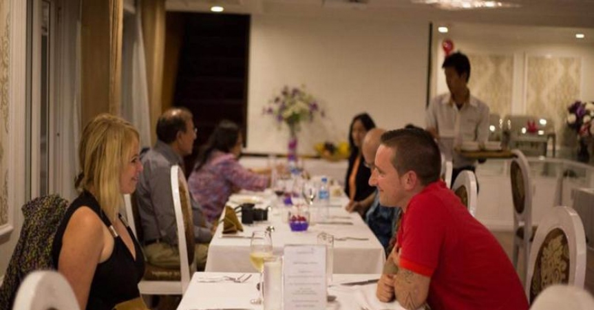 20.30 – 00.00 Tối nay là của bạn để thưởng thức những gì bạn thích. Quý khách có thể xem film trên du thuyền với nhiều bộ phim mới nhất được cập nhật, hoặc chơi games… Quấy bar luôn luôn mở cửa và là nơi lý tưởng để gặp gỡ, làm quen với những người bạn mới…