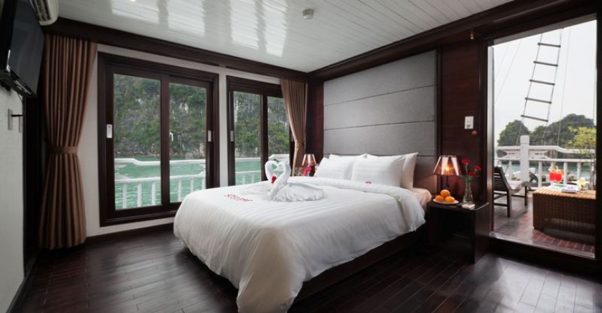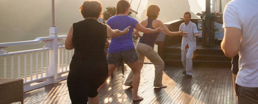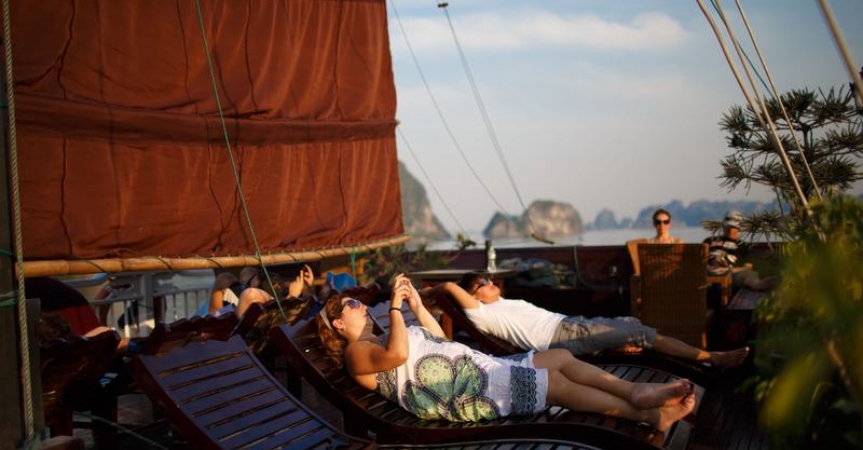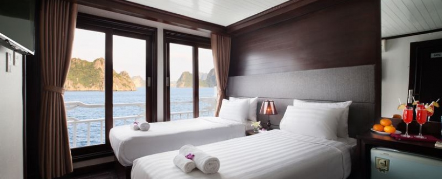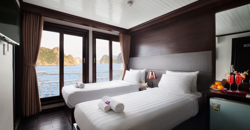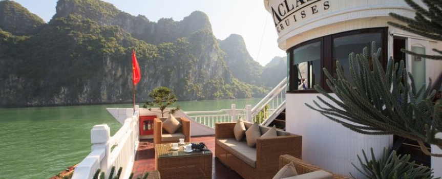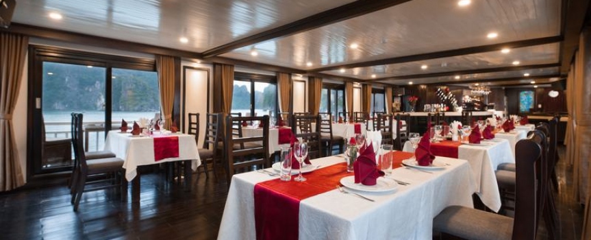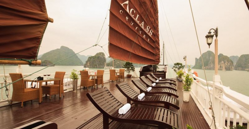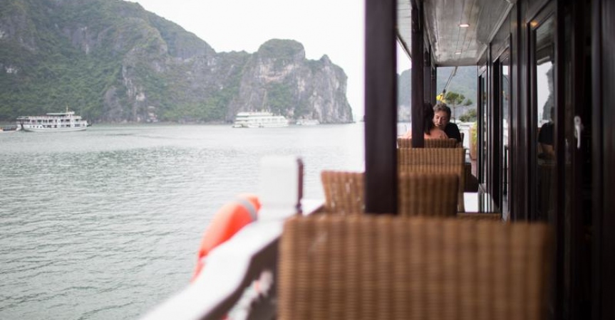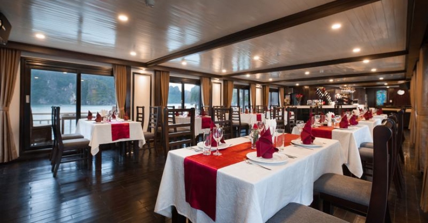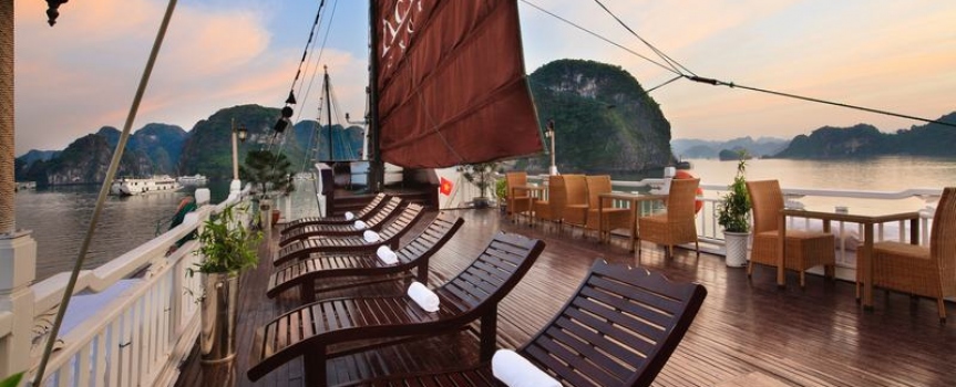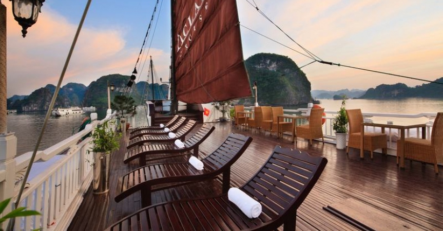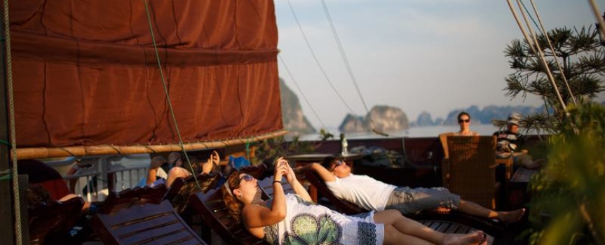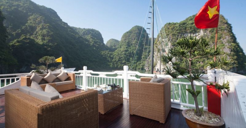 10:30 Quý Khách thư giãn trên boong tàu hoặc trong phòng ăn, đắm mình trong cảnh thiên nhiên tuyệt vời trên vịnh.