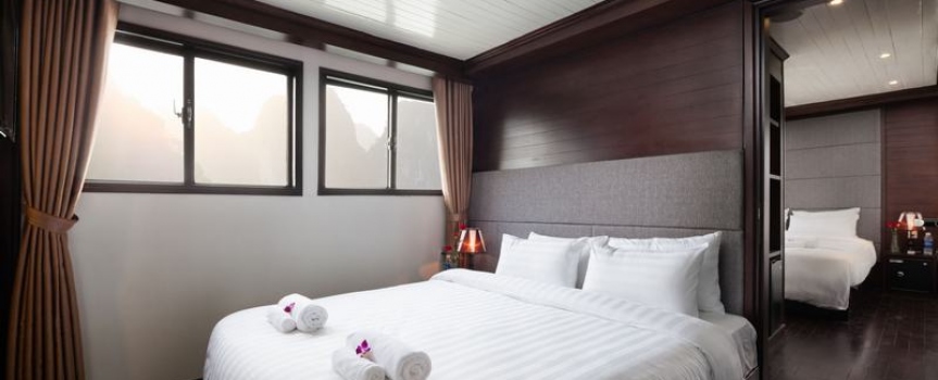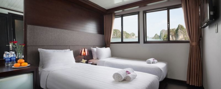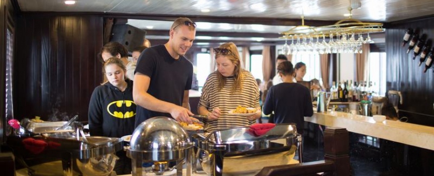 12:30 Lên tàu Stellar, thưởng thức bữa tiệc chào mừng của nhà tàu. Nhận phòng nghỉ và bắt đầu chuyến hành trình.