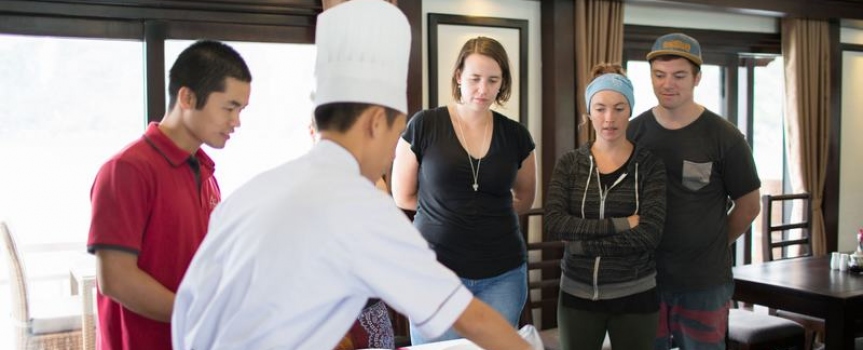 17:00 – 17:45 Trải nghiệm chương trình dạy nấu các món ăn trên boong tàu.