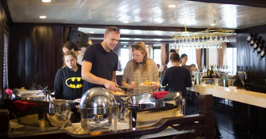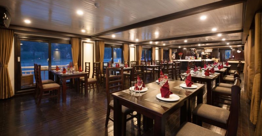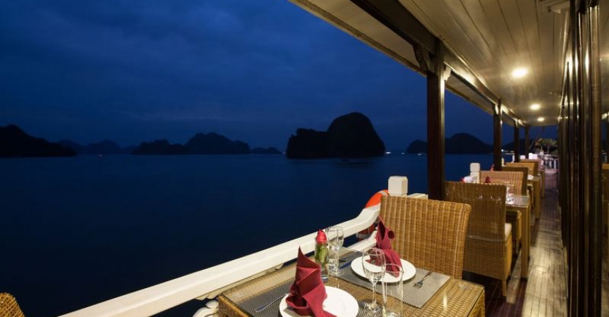 21:00 Quý Khách tự do nghỉ ngơi, giả trí tại quầy bar hoặc câu cá vào đêm. Nghỉ đêm trên tàu.