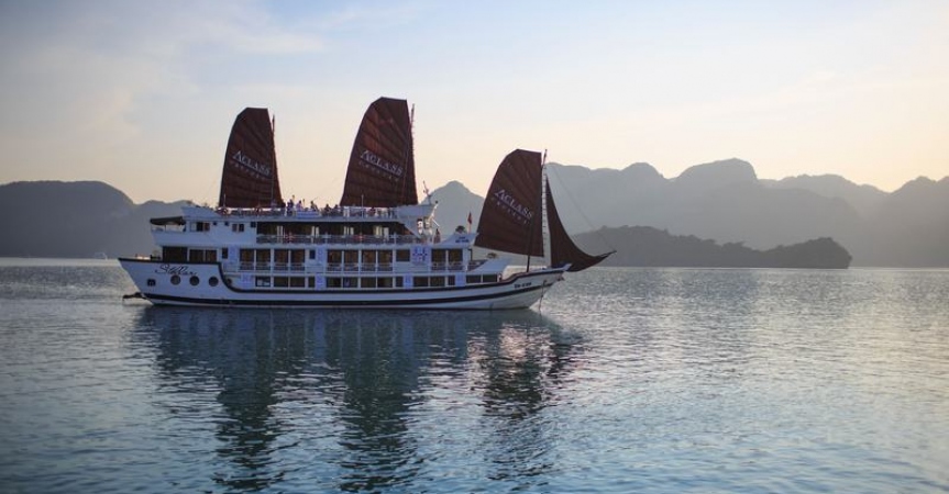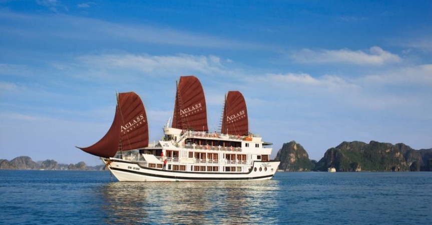 08:30 Di chuyển bẳng thuyền khám phá Vịnh Lan Hạ.
