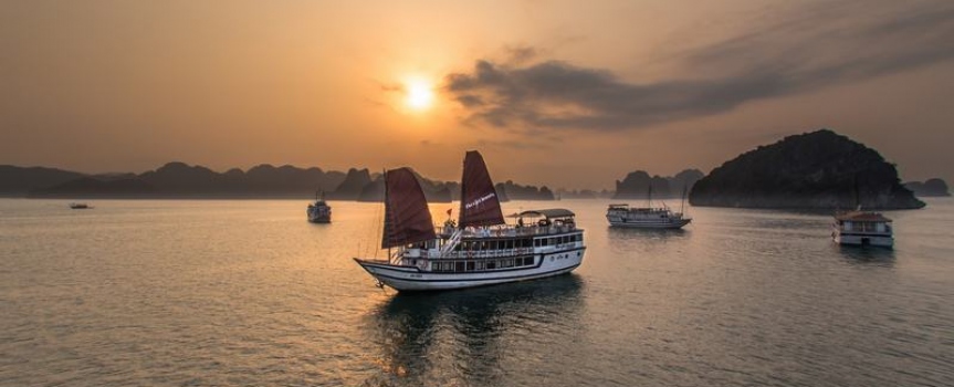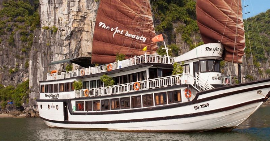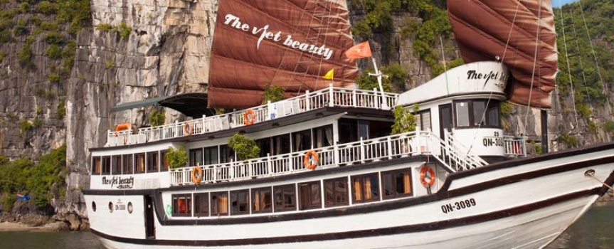 Quý khách quay trở lại Tàu Viet Beauty Cruise. Ăn tối và nghỉ đêm trên tàu.