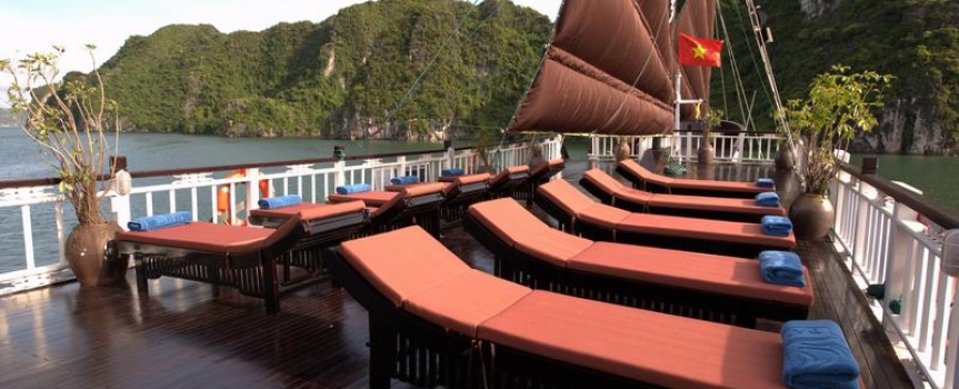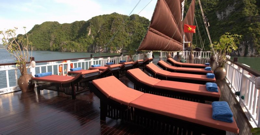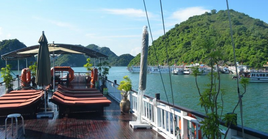 Sau khi chèo kayaking, quý khách quay trở lại tàu The Viet Beauty để thư giãn, ngắm cảnh, và thưởng thức đồ uống do nhà tàu cung cấp.
