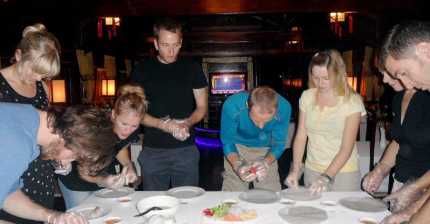 18:00 “ Lớp học nấu ăn” bắt đầu, qúy khách có cơ hội học làm 1 vài món ăn.