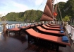 12:00 Đến bến tàu Bãi Cháy, quý khách sẽ được đưa lên tàu The Viet Beauty bằng thuyền nhỏ.