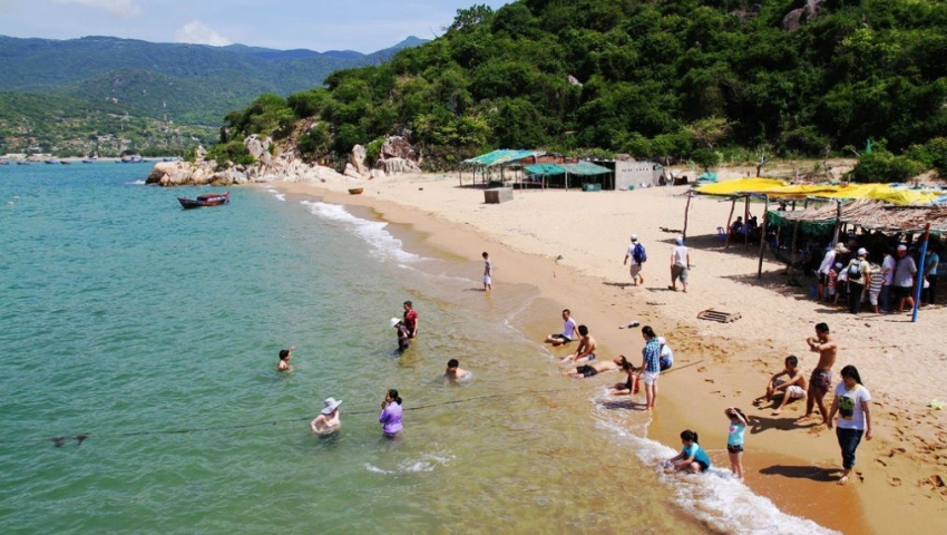Tàu đưa quý khách đến với khu du lịch Bãi Tranh. Quý khách nhận ghế dù nghỉ ngơi, tự do tắm biển tại đây.