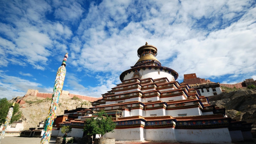 Thăm quan tu viện, địa danh nổi tiếng của trấn: tu viện Pelkhor Chode, bên trong có Thập Vạn Phật Tháp (Gyantse Kumbum) – cũng là tháp Stupa (Chorten) lớn nhất và độc đáo nhất trên cao nguyên Thanh Tạng. Nghe thuyết minh về các tông phái Phật Giáo Tây Tạng.