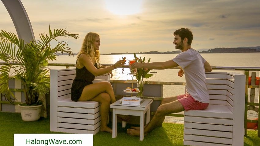 - Đồ uống chào mừng, 2 chai nước suối trên xe bus