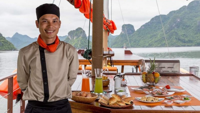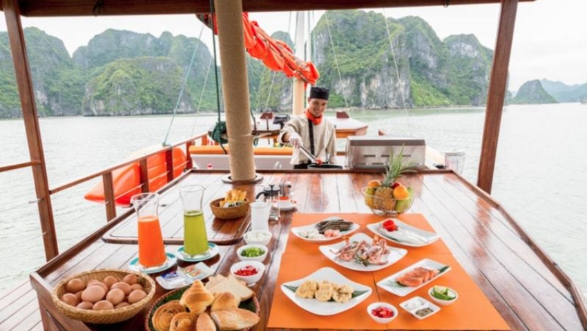 • Bữa ăn tự chọn theo phong cách Việt Nam với món khai vị, súp và salad, bánh mì bao gồm các món ăn hải sản của Vịnh Hạ Long, món tráng miệng, trái cây, cà phê và trà.