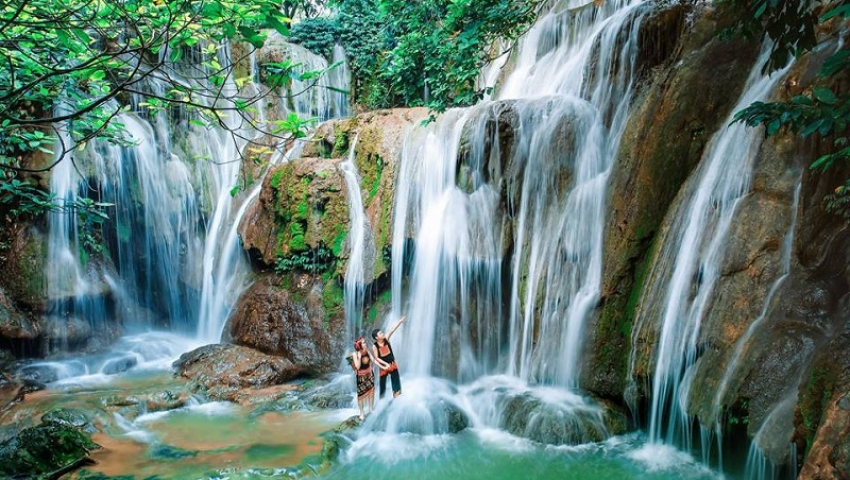 Chiều: Xe và Hướng dẫn viên đưa Qúy khách đi tham quan Thác Dải Yếm (hay còn gọi là thác Nàng, thác Bản Vặt) thuộc xã Mường Sang, huyện Mộc Châu, tỉnh Sơn La. Thác nước có cái tên mềm mại, ảnh hình quyến rũ với cái tình gợi cảm, đẹp và buồn của sơn nữ.