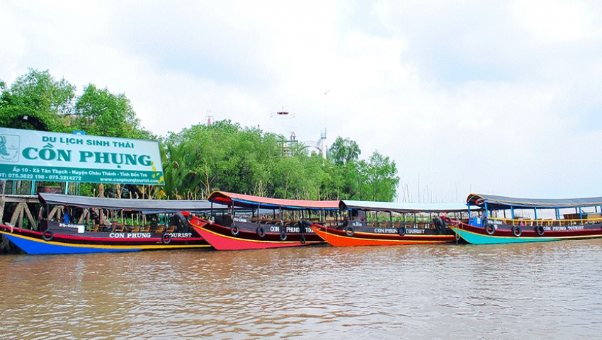 Thuyền tiếp tục đưa khách đến với Khu Du Lịch Cồn Phụng thuộc địa phận của tỉnh Bến Tre. Tham quan cơ sở sản xuất kẹo dừa. Quý khách sẽ được tìm hiểu quy trình làm kẹo dừa của người dân Bến Tre, thưởng thức những viên kẹo dừa vừa ra lò.