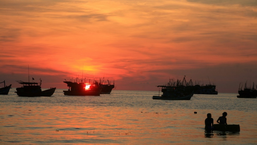 17h00: HDV đón khách tại khách sạn, đến bến cảng Dương Đông (Mùa mưa tàu sẽ khởi hành ở Bãi Sao) lên tàu chạy đến ngư trường câu mực.Trong khi thuyền đang chạy, quý khách sẽ được ngắm hoàng hôn trên đảo Ngọc, một cảnh sắc làm say đắm lòng người.