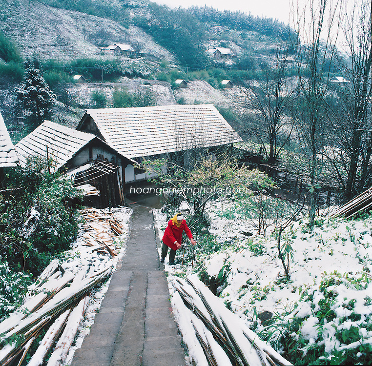 Những ruộng bậc thang không còn những màu xanh mượt mà,hay màu vàng óng ả mà thay vào đó là những bậc thang phủ đầy tuyết trắng như những nấc thang lên thiên đường.
