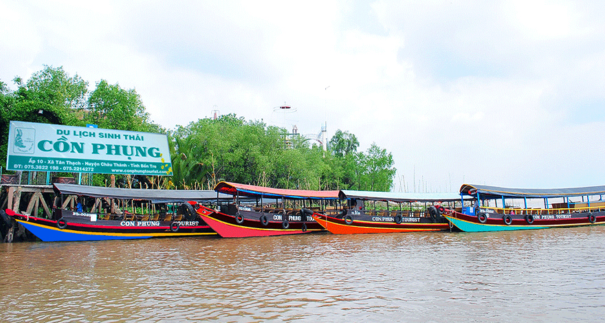 Thuyền tiếp tục đưa khách đến với Khu Du Lịch Cồn Phụng thuộc địa phận của tỉnh Bến Tre. Tham quan cơ sở sản xuất kẹo dừa. Quý khách sẽ được tìm hiểu quy trình làm kẹo dừa của người dân Bến Tre, thưởng thức những viên kẹo dừa vừa ra lò.