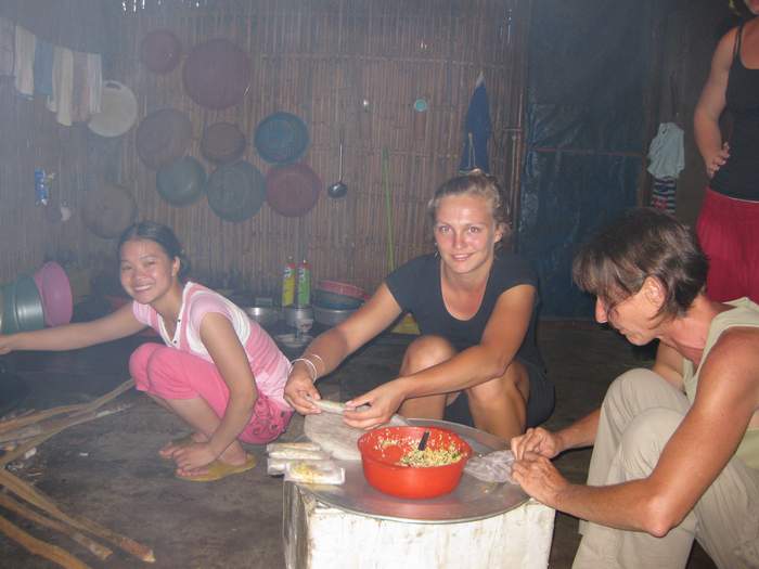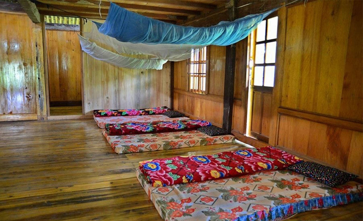 +Giường ngủ với đệm, chăn, màn tại nhà của người dân bản (homestay)